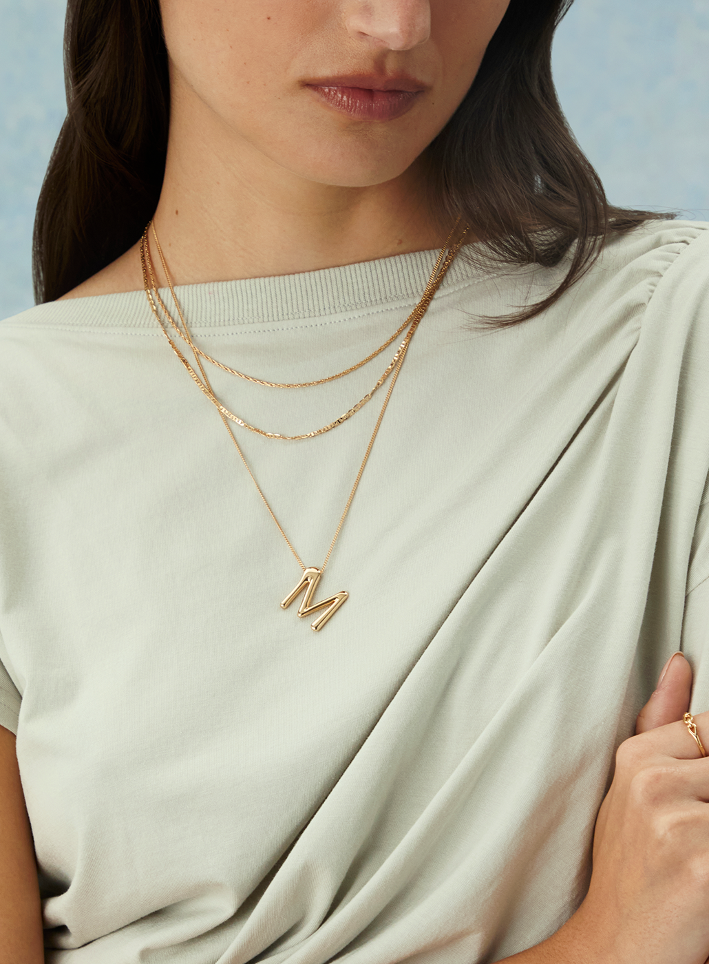 M Initial Bold Pendant Necklace in Gold