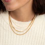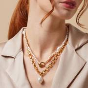 Pearls aren't just for summer. Wear your pearls with your knits for a cool feel, and add golden chain necklaces to add luxe texture.