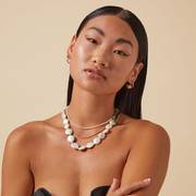 Calling all silver lovers! The pearlescent finish of our freshwater pearls pairs perfectly with silver. Opt for pearl beaded necklaces with silver chains, and dainty pearl huggies with statement ear cuffs.