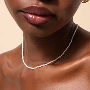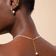Sometimes less is more, which is why we like to wear our Radiant Pearl Necklace alone for a minimalist look. Balance out the look with pearl hoops and an ear cuff, and you have the ultimate opulent look.