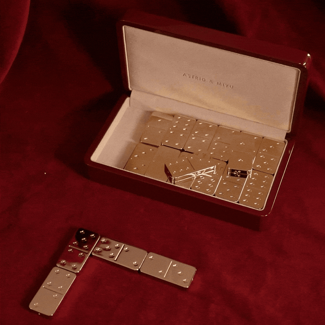 Keep things interesting by creating your very own cosmic constellation of golden Domino Tiles by Astrid & Miyu. It’s a game of numbers, strategy, and a spot of luck. The aim is to find matches, play all of your pieces, and eventually leave the table glowing with gold.