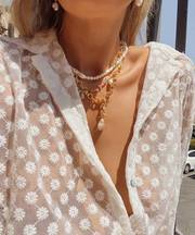 This jewellery look is an ode to the modern classic - the brunch. Take this occasion to pile on the jewels, opt for fun & playful styles to add a statement. Pieces from our Harmony Collection add pearly touches, whilst necklace layering adds a luxe golden vibe.