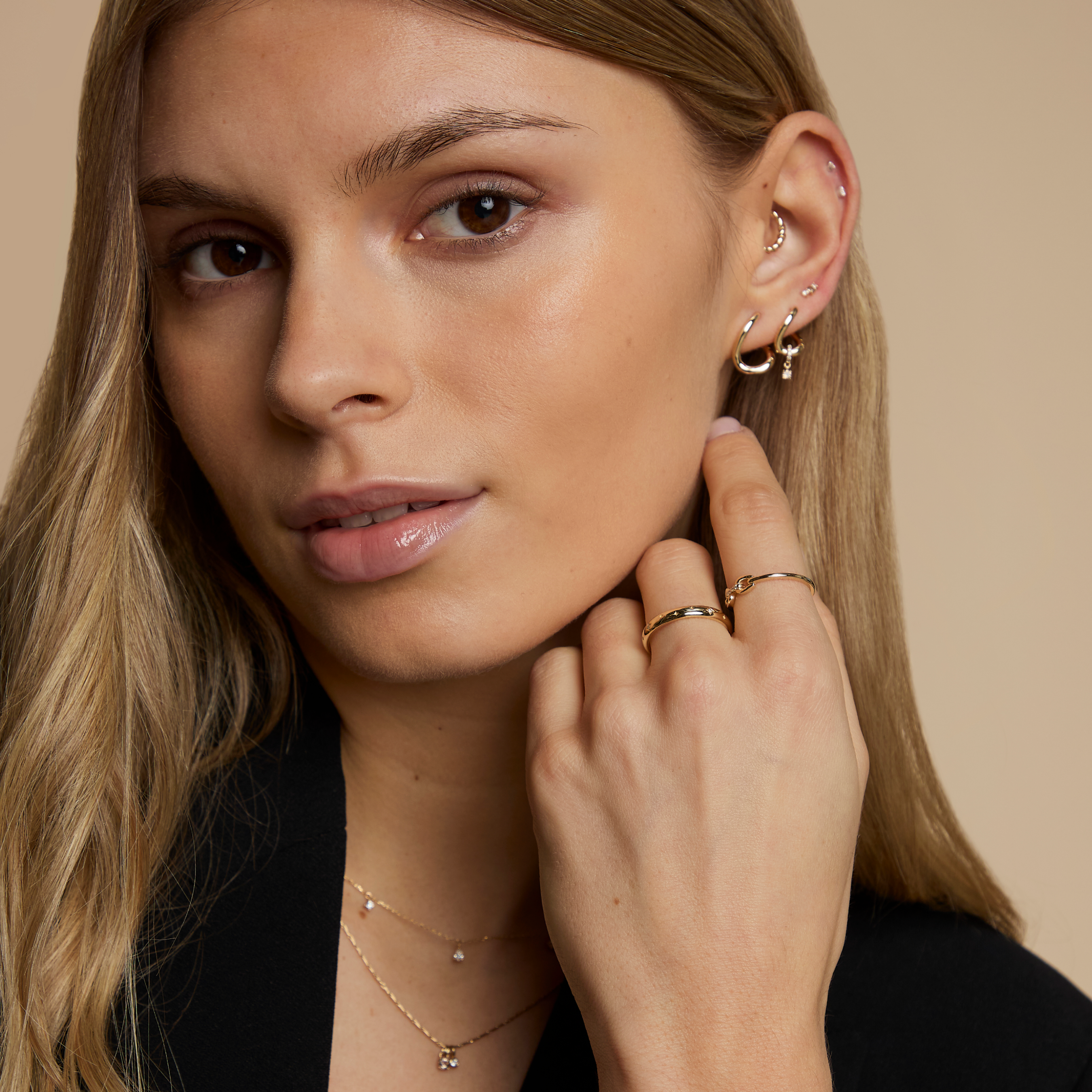 Crystal Stacking Ring in Gold