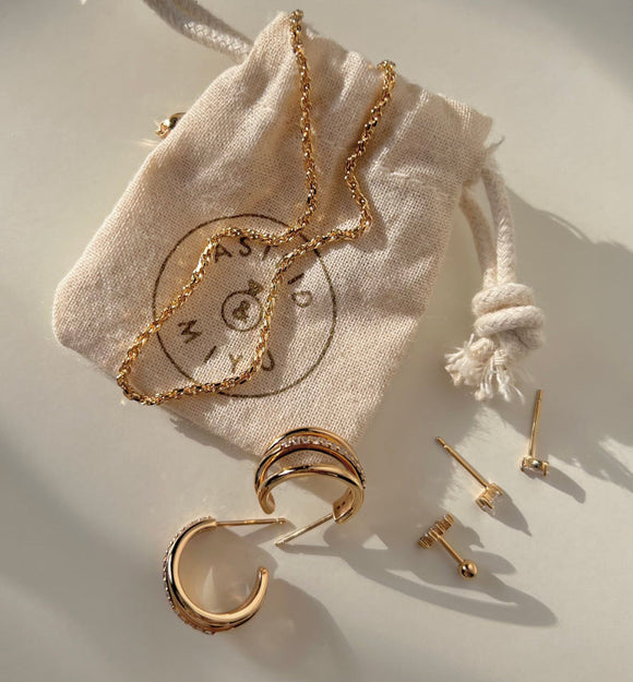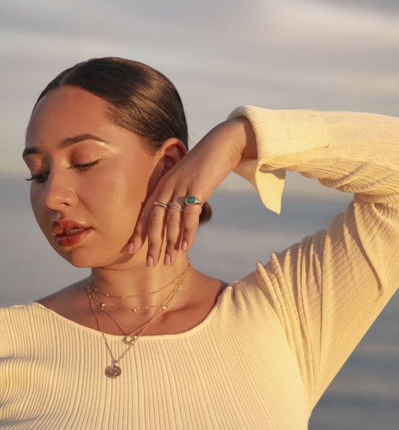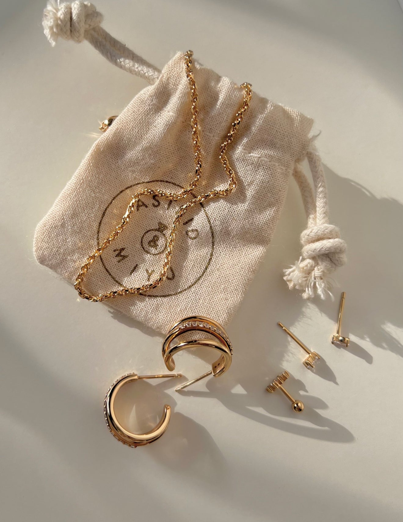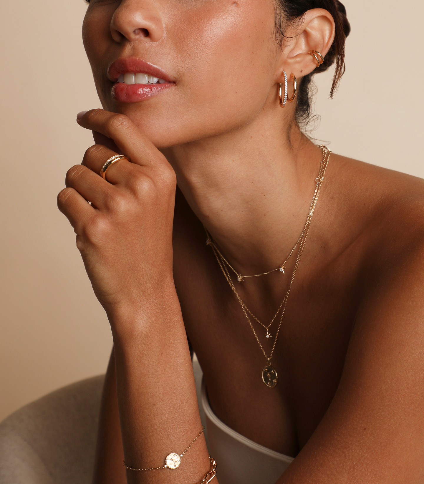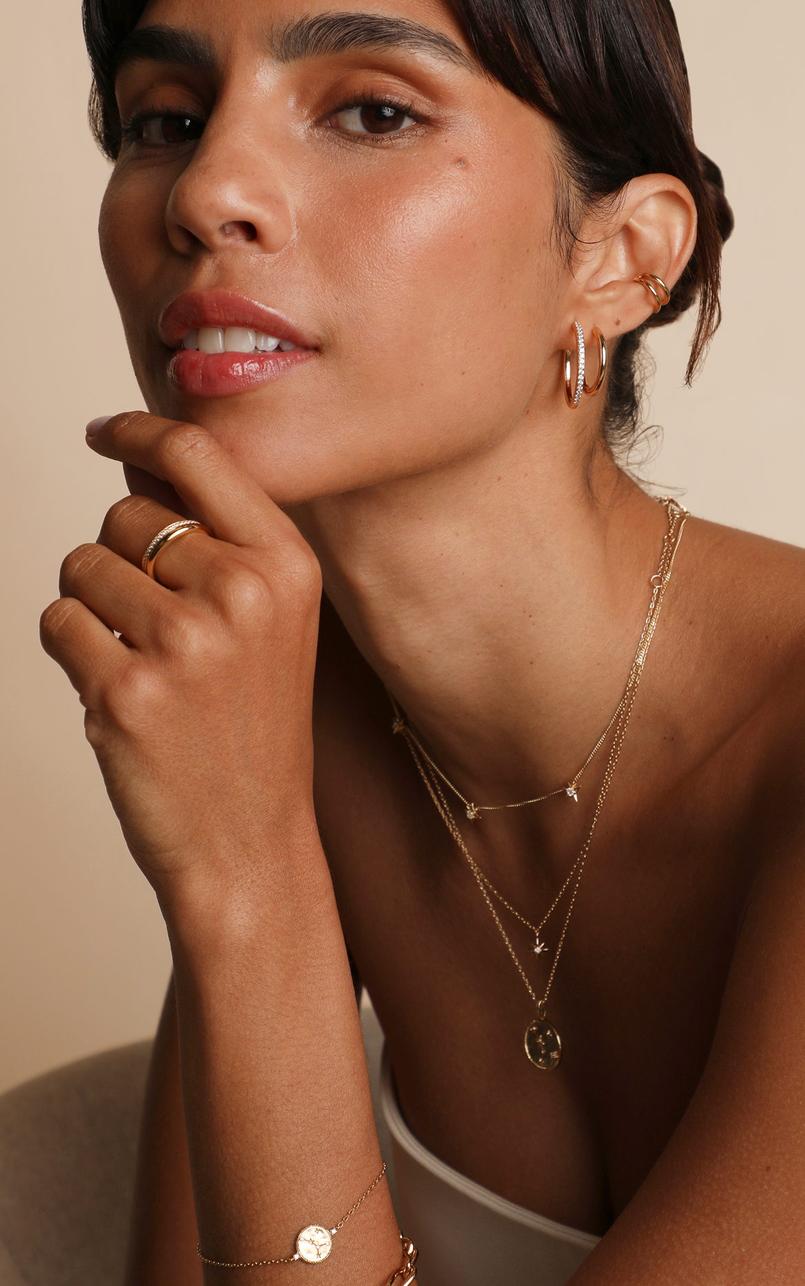 In our journey to becoming a more responsible jewelry brand, our newest collections will be made from from recycled sterling silver and recycled solid gold range. Expect a consciously curated selection of stacking staples & sparkly faves to stay in your collection season after season.