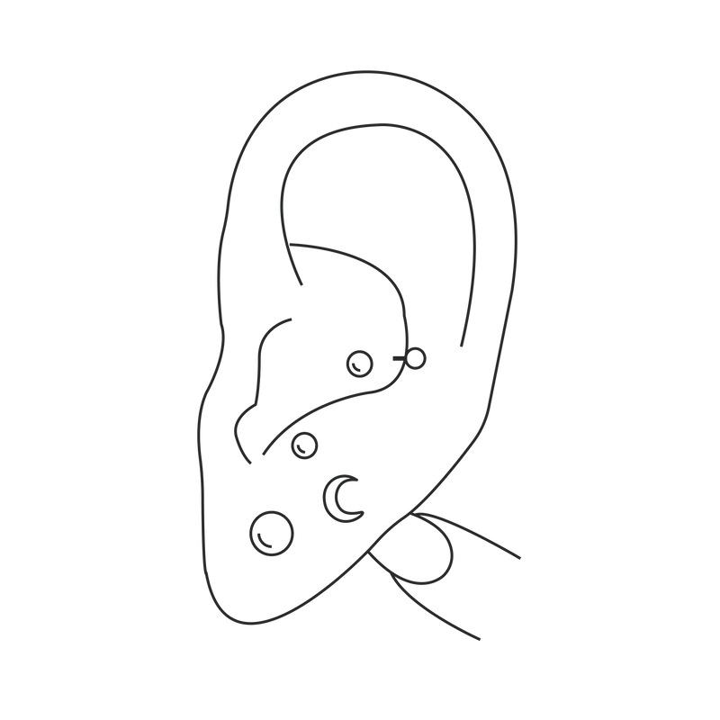 We think it's best to keep it cute and dainty for your tragus piercing, so we recommend choosing a dainty barbell from our collection. You can either keep it sleek and simple and go for a ball barbell, or add a touch of celestial sparkle with some cubic zirconia inlays.