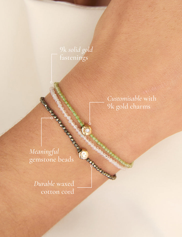 Customise your Gemstone Bracelet with 9k gold charms. Pick and mix different designs to symbolise the parts of your story, and make your bracelet uniquely yours.