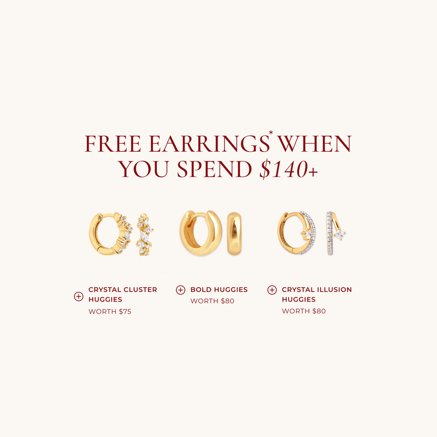 - Spend $140 or more to receive a free pair of Crystal Cluster Huggies, Bold Huggies, or Crystal Illusion Huggies.