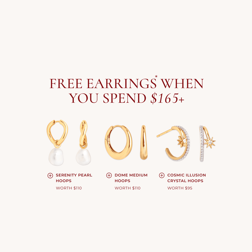 - Spend $165 or more to receive a free pair of Serenity Pearl Hoops, Dome Medium Hoops, or Cosmic Illusion Crystal Hoops.