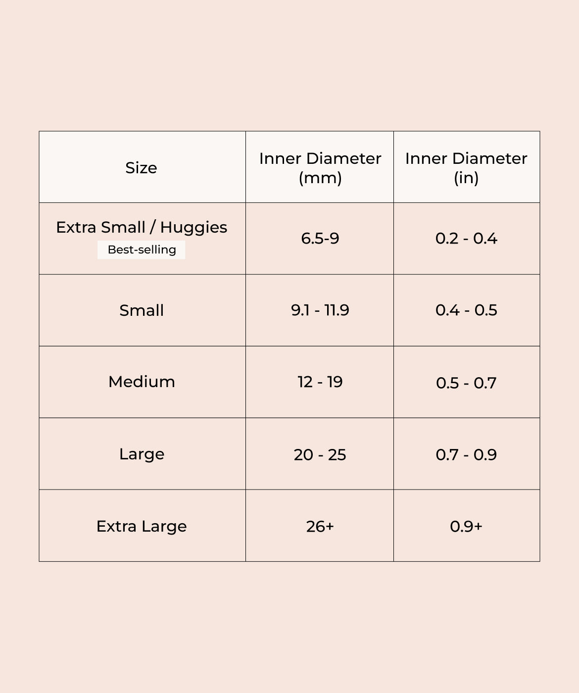 These extra small hoops, between 6.5mm-9mm, are perfect for the minimalists, or for wearing in your second or third lobes.