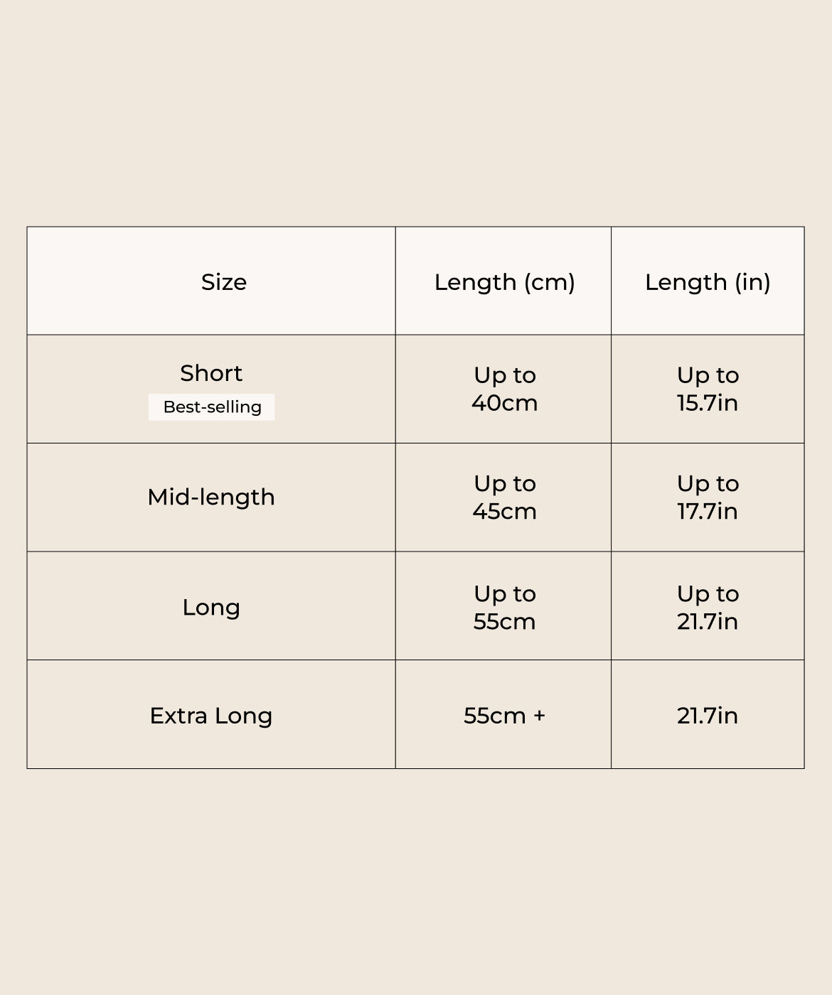 Our chain necklaces, pendant necklaces & chokers range between lengths of 33cm-50cm. Most of them have an extender chain, so you can add up to 5cm to the length of the chain.