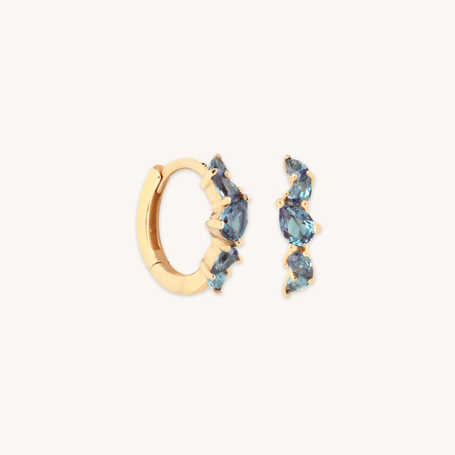These gemstone huggies, featuring a cluster of lab-grown alexandrite stones, are crafted in 14k solid gold to wear and love every day.
