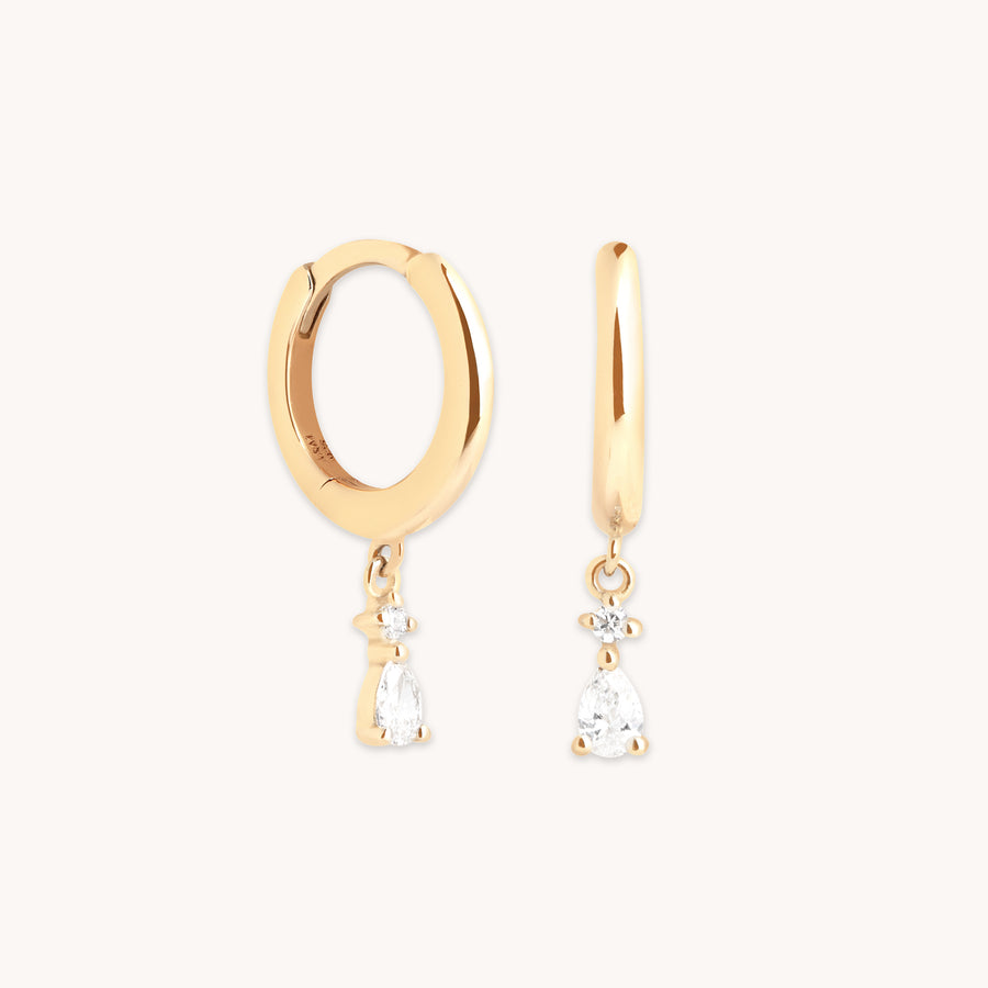 Shine bright in these charming 14k solid gold huggies, featuring lab-grown diamond charm details.