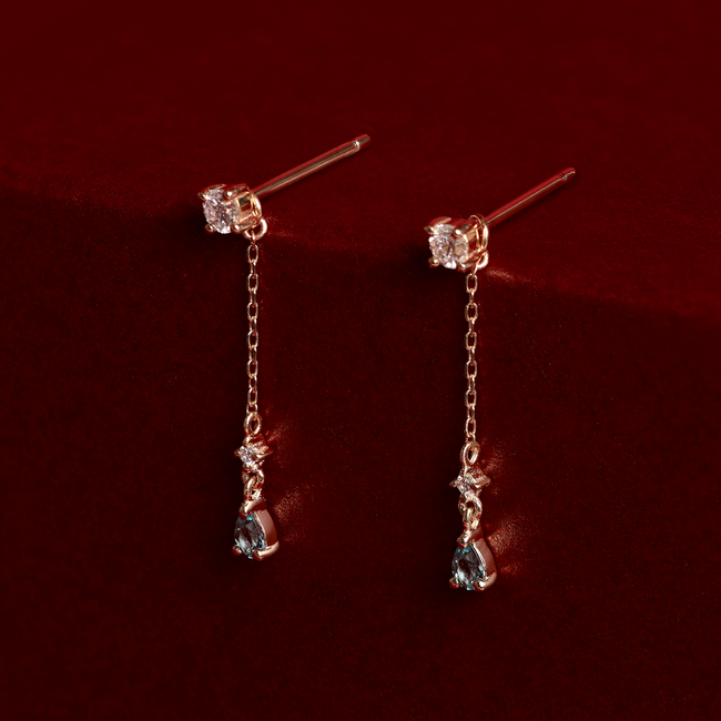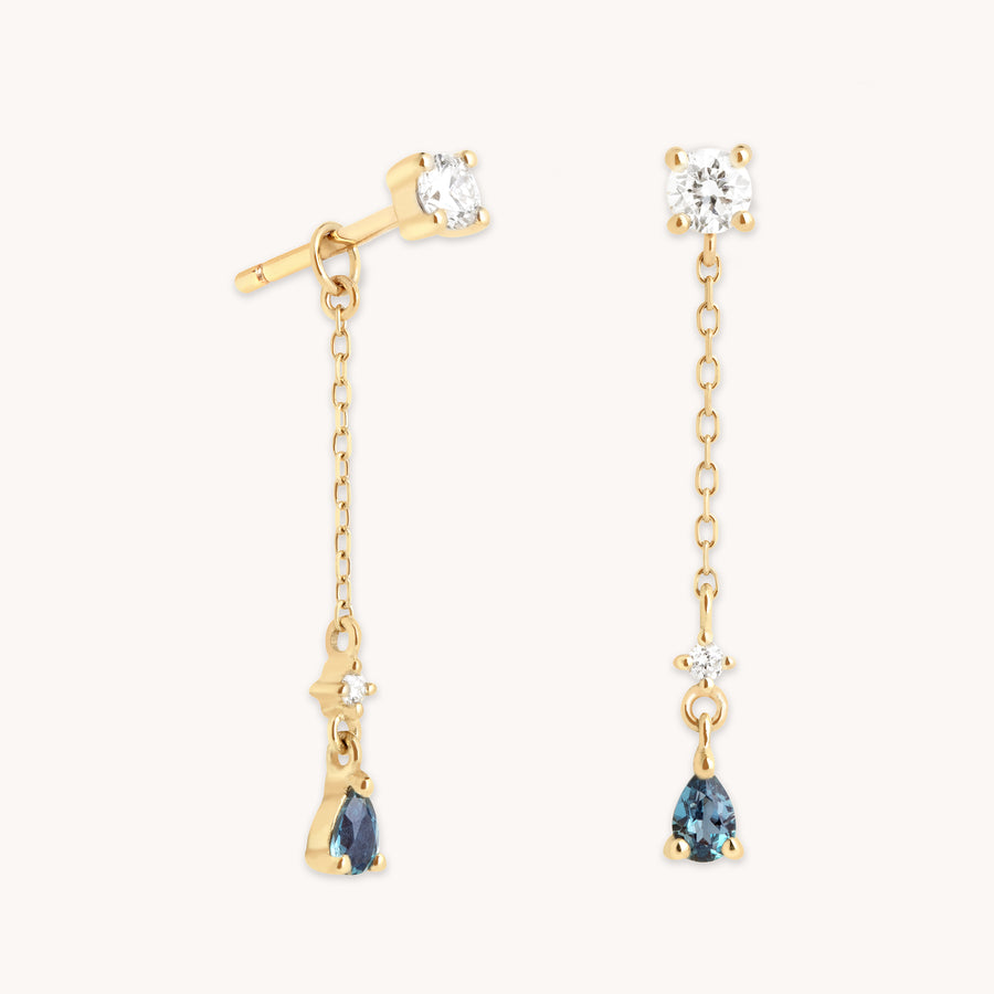 Diamond & Alexandrite Drop Studs in Solid Gold