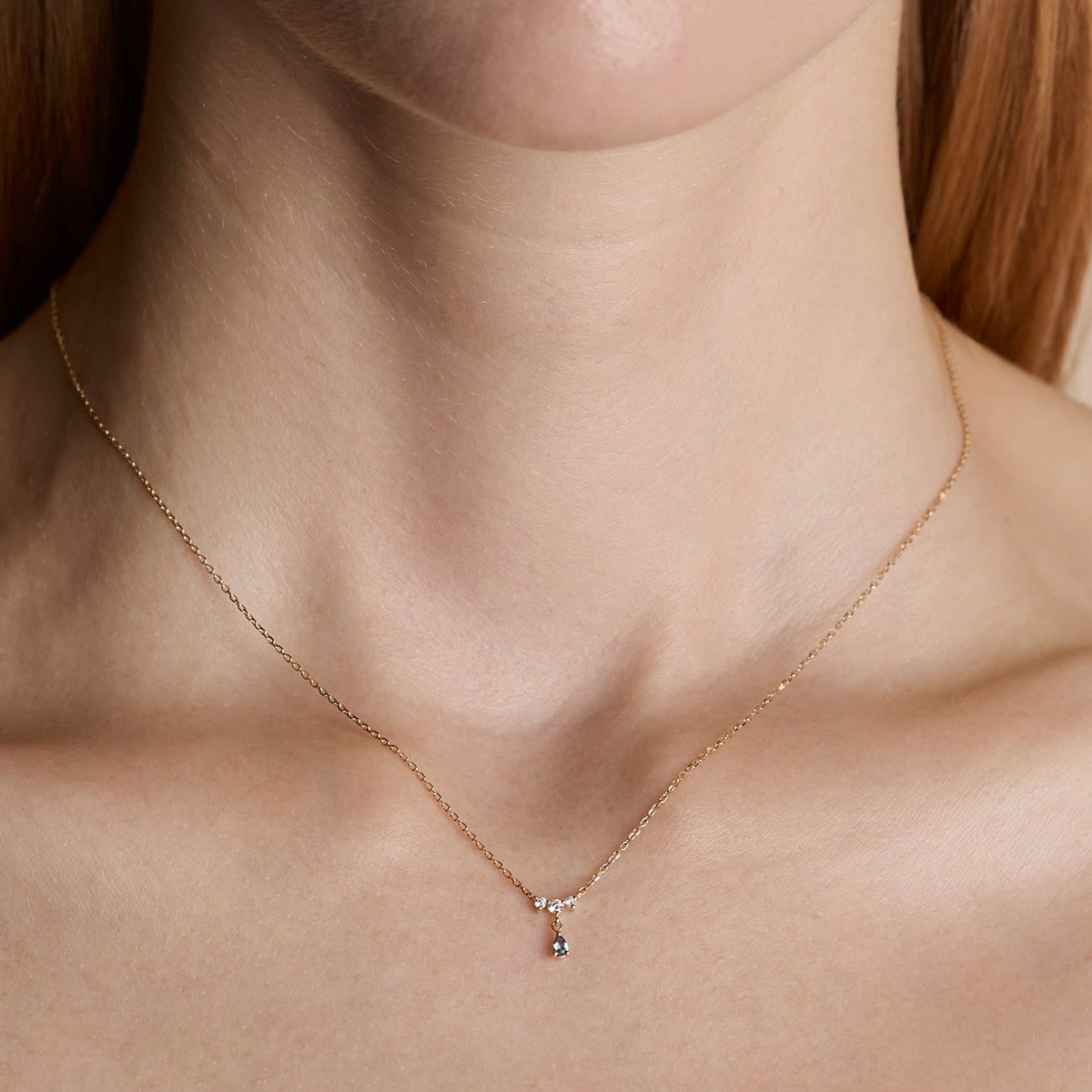 Make your neckline shine with precious lab-grown gemstones. This dainty pendant necklace features a pear-shaped alexandrite charm hanging from a cluster of brillaint lab-grown diamonds.
