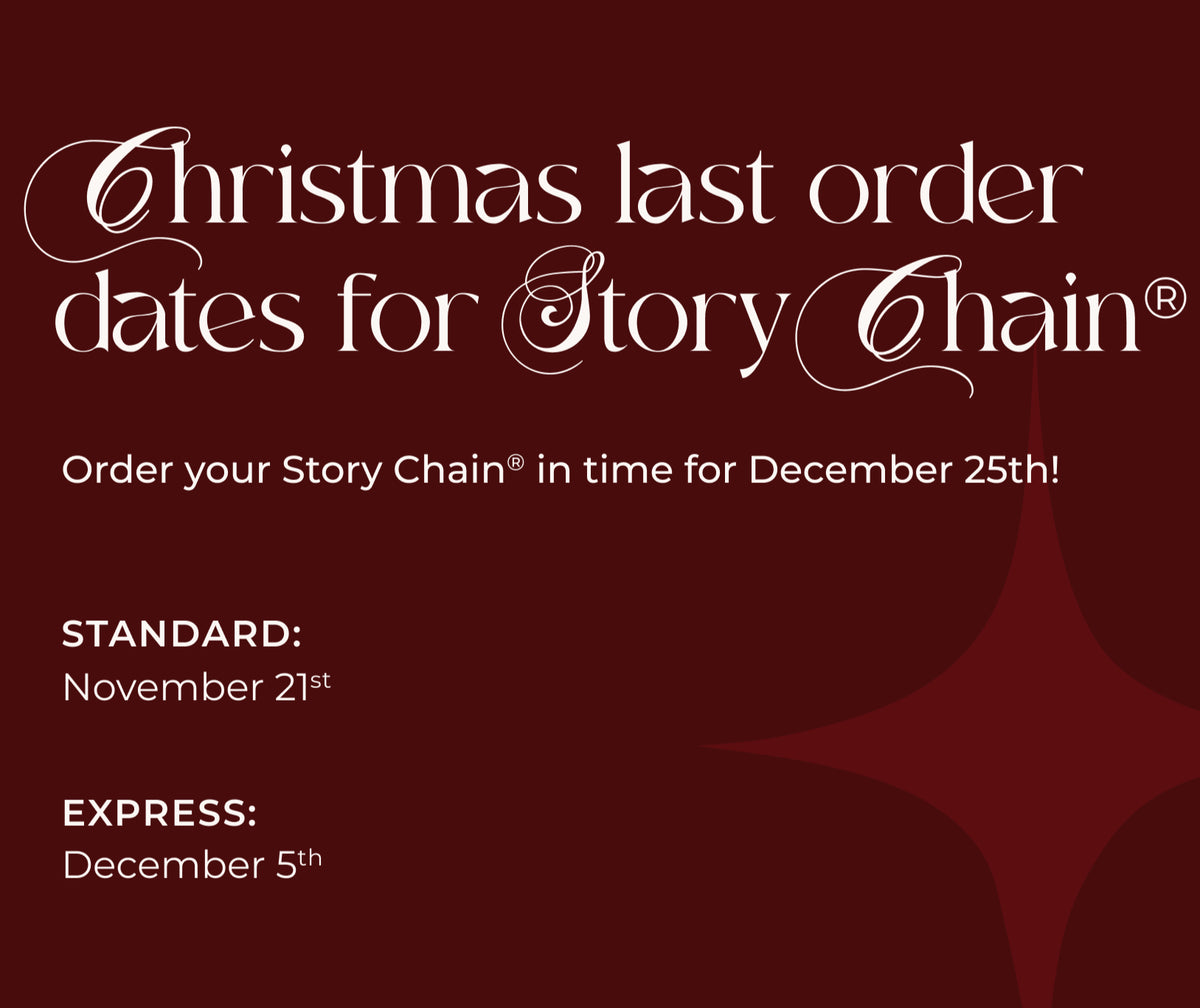 Once you’ve designed your piece online or in-store, you’ll receive your Story Chain® within five weeks. If you need it sooner, you can choose to pay a $40 Express Service charge for a three week delivery!