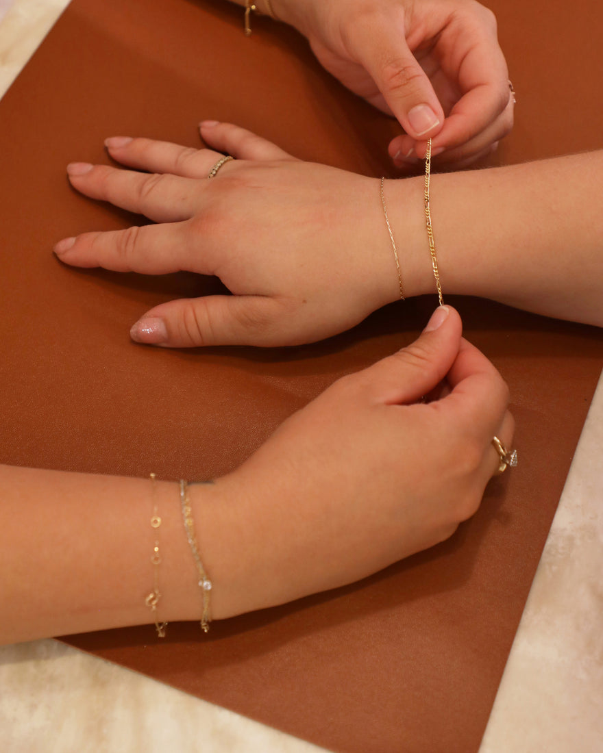 Choose from our classic 9k solid gold chains, available as necklaces, bracelets and anklets in a range of lengths. Designed to be the base of your Story Chain®.