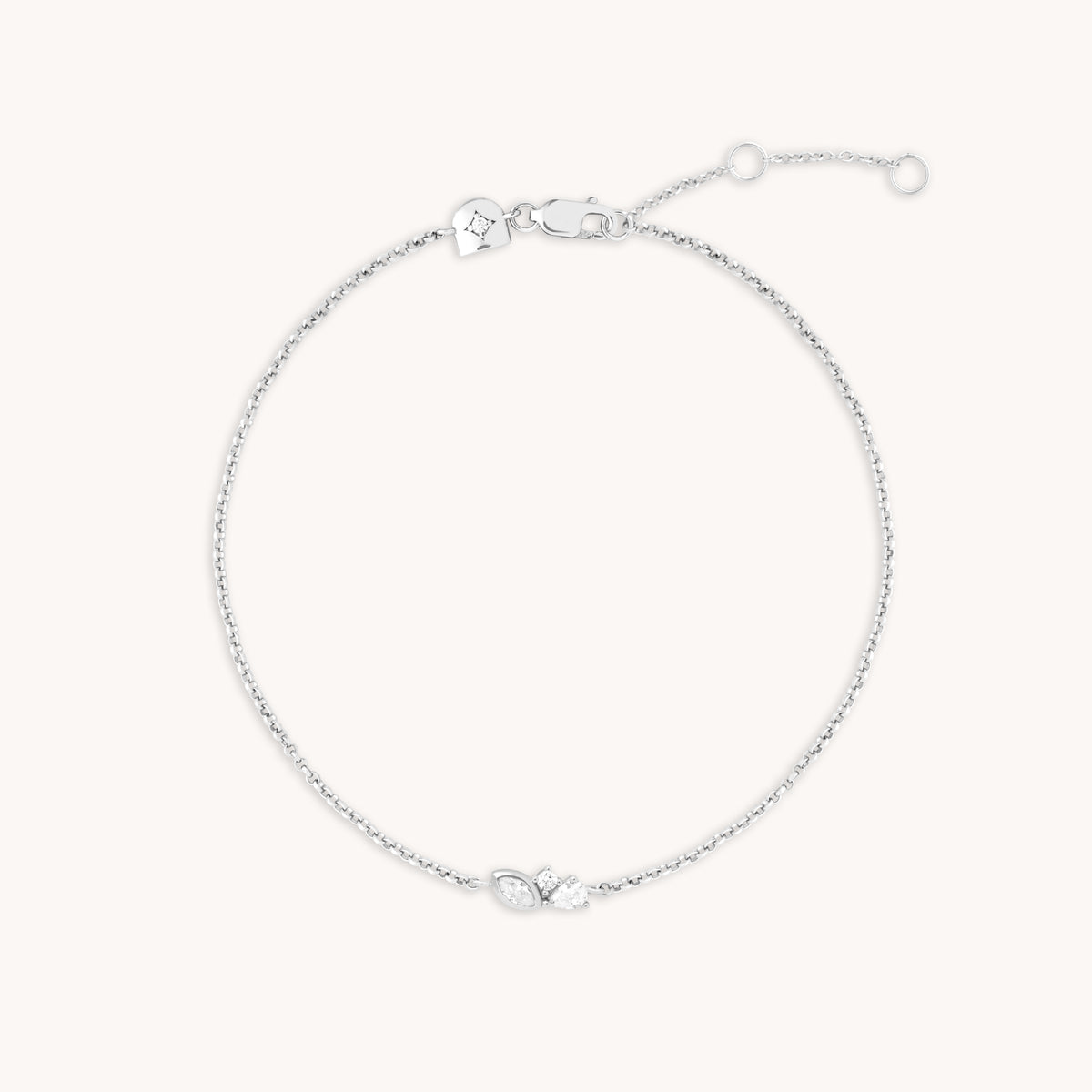 Complete your festive look with this dainty silver chain bracelet. Adorned with a cluster of cubic zirconias in assorted cuts.