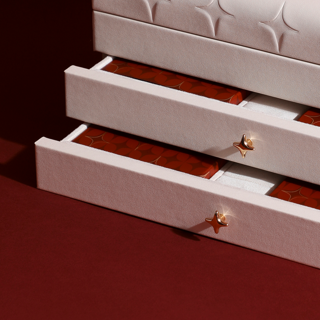All pieces will be individually wrapped in a cosmic sleeve, topped with a ribbon.