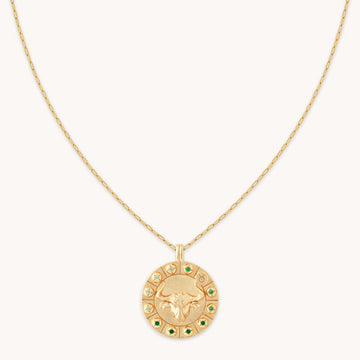 Wear your star sign with pride. The Bold Zodiac Pendants are the ultimate statement, and the main event of any jewelry dish. The big sister to our Zodiac Pendants, this is engraved in the Taurus symbol with green stones to represent the earth element.