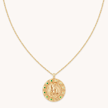 Wear your star sign with pride. The Bold Zodiac Pendants are the ultimate statement, and the main event of any jewelry dish. The big sister to our Zodiac Pendants, this is engraved in the Virgo symbol with green stones to represent the earth element.