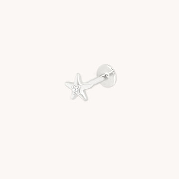 Diamond Star Medium Piercing Stud in Solid White Gold