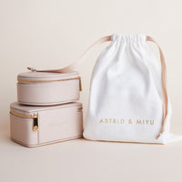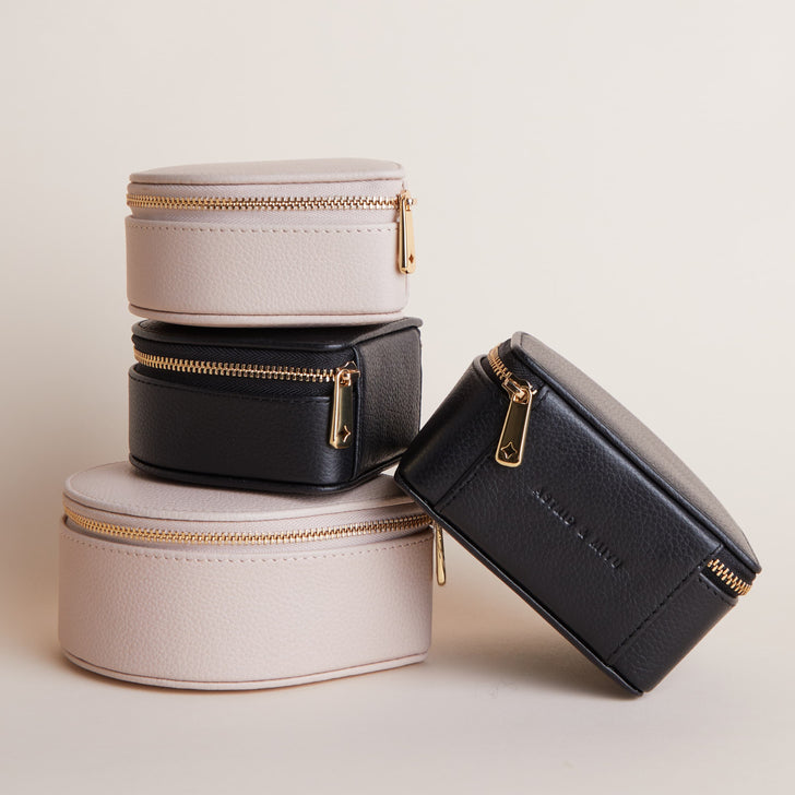 Like our jewelry, we’ve created our jewelry cases with quality in mind. Hand cut and hand stitched, we’ve chosen grained leather because of its durability. Our suppliers are certified by the Leather Working Group, which looks to build a more sustainable and conscious future within the leather industry.