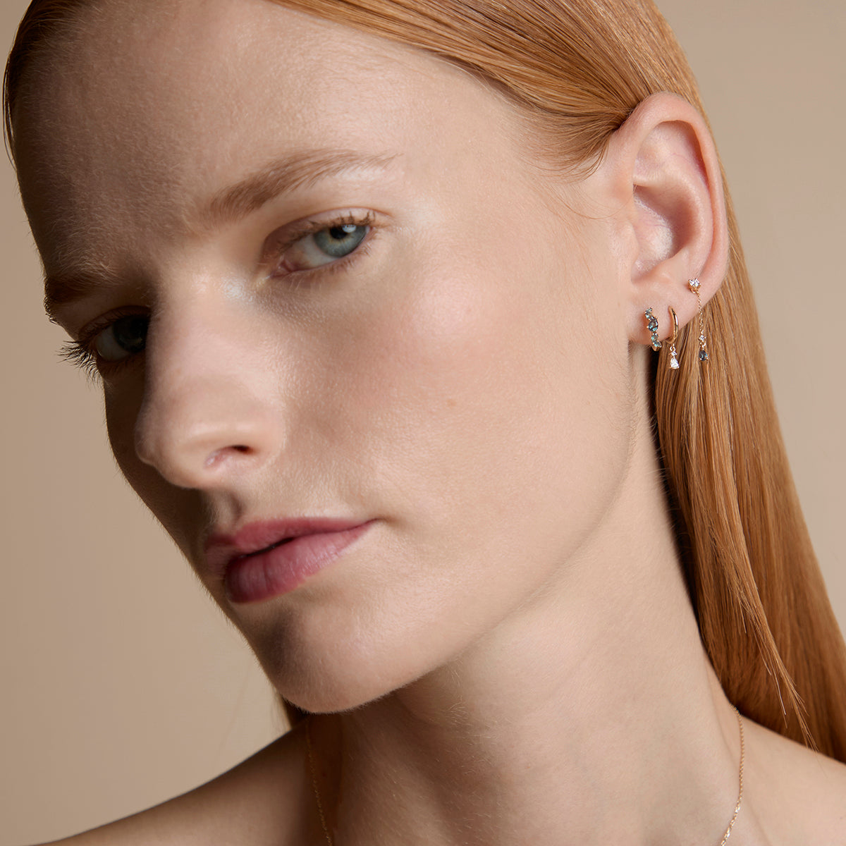 These gemstone huggies, featuring a cluster of lab-grown alexandrite stones, are crafted in 14k solid gold to wear and love every day.