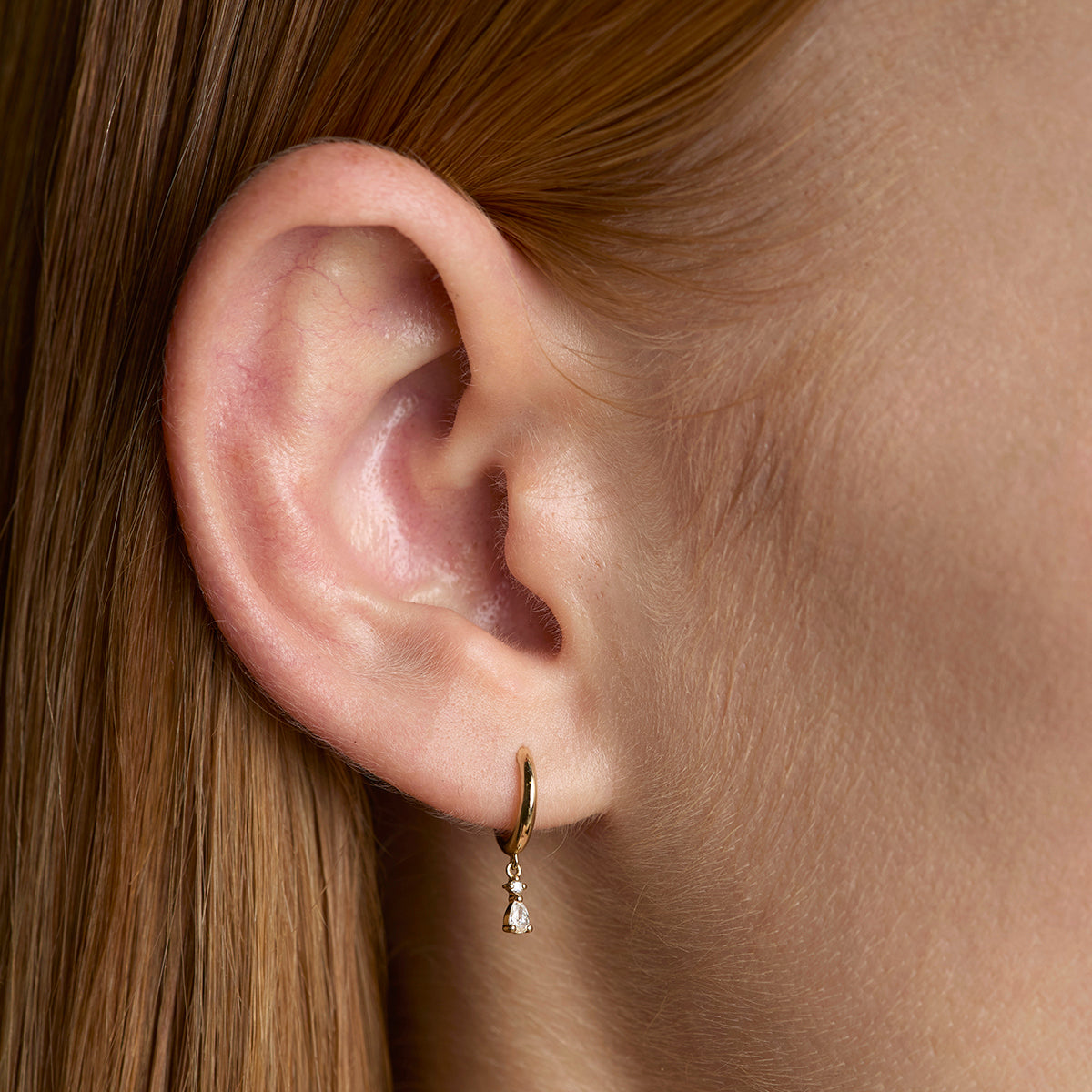Shine bright in these charming 14k solid gold huggies, featuring lab-grown diamond charm details.