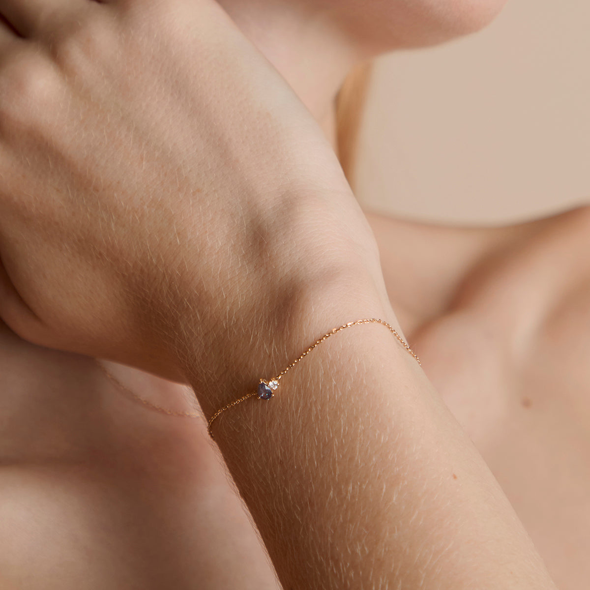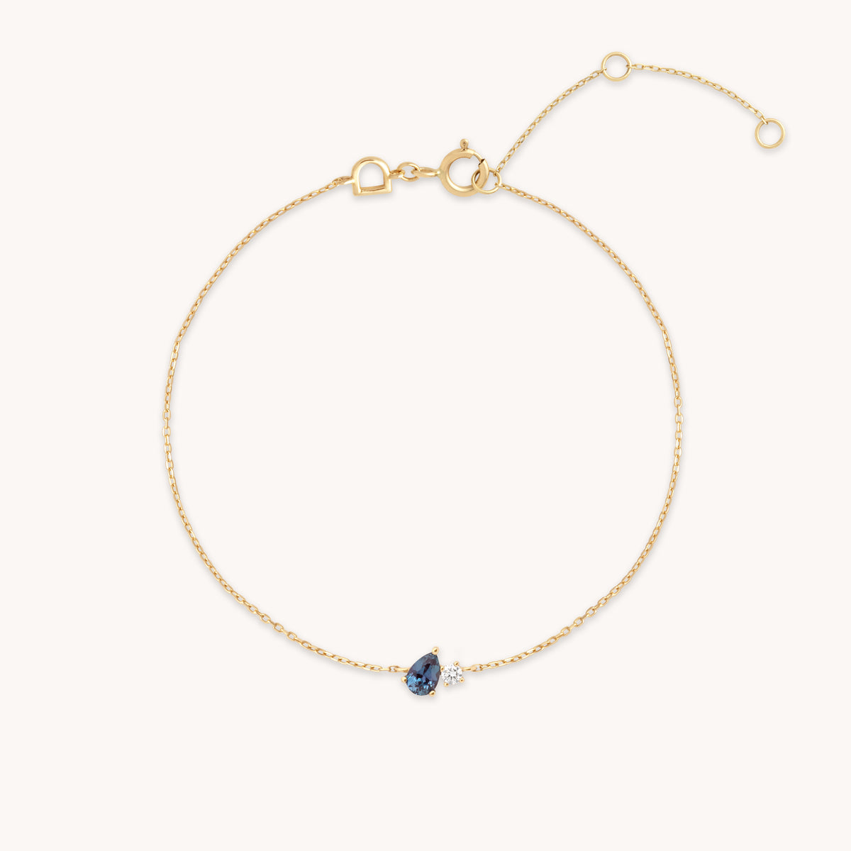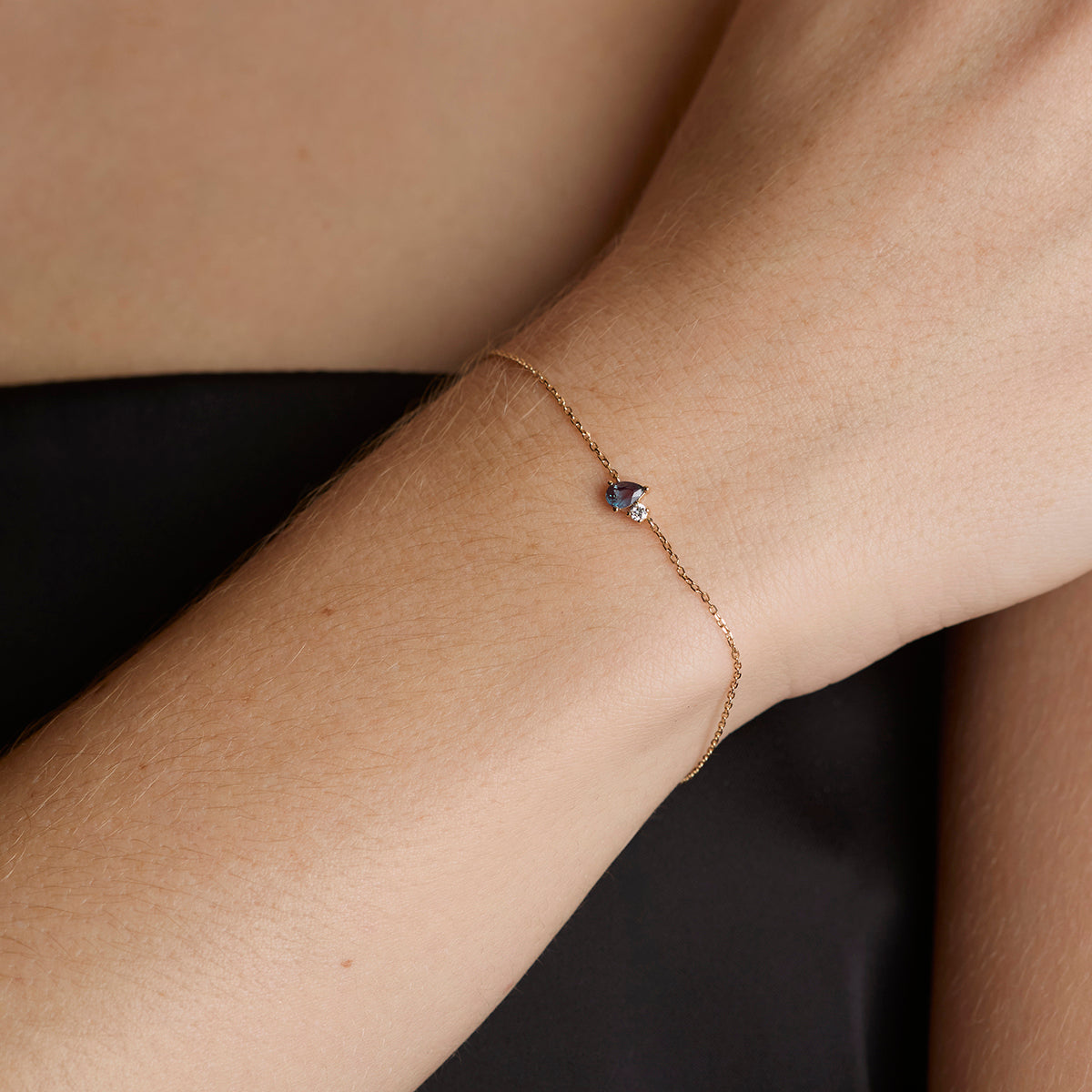 Make your wrist stack shine with precious lab-grown gemstones. This dainty bracelet features a pear-shaped alexandrite stone nestled agaisnt a delicate lab-grown diamond.