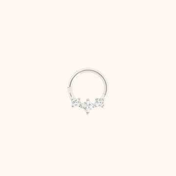 Square Crystal Trio Titanium Daith Hoop in Platinum